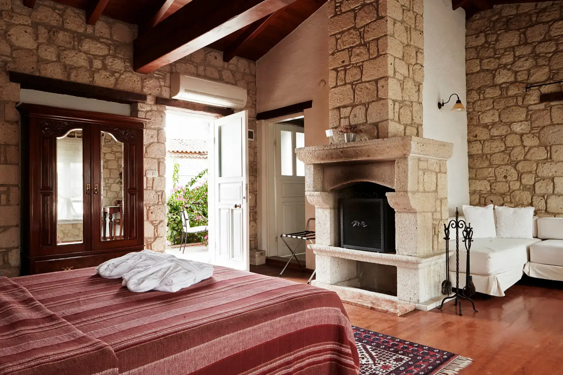 Alaçatı’nın taş mimarisini en romantik haliyle yansıtan İncirli Ev Otel, özellikle şömineli ve jakuzili odalarıyla dört mevsim kaçamakları için ideal bir atmosfer sunuyor. Taş duvarların sıcak dokusu, loş ışık ve şömine başında geçirilen uzun akşamlar; Alaçatı’nın rüzgârlı kış günlerini bile keyifli bir ritüele dönüştürüyor. Jakuzili süitlerde ise gün boyu sokak keşfinin ardından rahatlatıcı bir spa hissi yaşamak mümkün. Samimi, butik ve zarif bir Ege deneyimi arayan çiftler için oldukça güçlü bir alternatif.